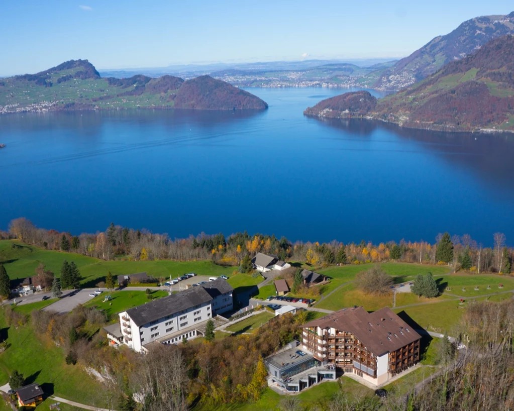 Wir logieren im 3* Höhenhotel Seeblick in Emmetten. Das Hotel liegt erhöht über dem See und bietet eine idyllische Aussicht auf den See und die umliegenden Berge. Die ruhige Lage, komfortable Zimmer und ein Hallenbad verhelfen zu entspannten Ferientagen.